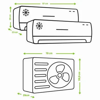 Aire acondicionado 2×1 inverter para pared ideal para climatizar dos estancias de hasta 25 m² (con una potencia de 2000 frigorías) y 35 m² (con una potencia de 3000 frigorías) respectivamente.